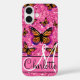 Pink sparkling glitter, orange pink butterflies Case-Mate iPhone case