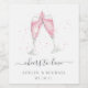 Festive and elegant wine labels for your engagement party or wedding feature a pair of clinking sparkling wine glasses in watercolor, filled with pink bubbly. Personalise with two lines of custom text beneath; shown with "cheers to love" and the couple's names and wedding date.
