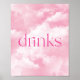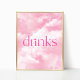 This is a Pink Sparkly Clouds Drinks Table Party Sign!