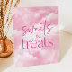 This is a Pink Sparkly Clouds Sweets & Treats Party Pedestal Sign!