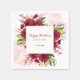 Elegant birthday floral napkin featuring a vibrant burgundy dahlia and rose flower design with watercolor pink splash.