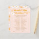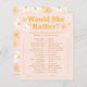 Add fun to your baby shower with the Personalised Pink Spring Baby In Bloom Would She Rather Game. Perfect for baby shower games, this game complements spring baby shower themes and offers unique spring baby shower ideas. Ideal for a spring baby shower, it fits well with april baby shower ideas, floral baby shower ideas, garden baby shower theme, and wildflower baby shower theme. Celebrate with baby in bloom shower ideas, baby in bloom baby shower theme, or a march baby shower.