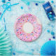 Pink doughnut with sprinkles pool float party plates are perfect for any pool or beach themed event.