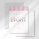 Celebrate your toddler's milestone with this "Sweet to be Eight" ice cream parlor birthday invitation. This adorable design features watercolor sprinkle typography, a classic pink awning, and a whimsical sundae aesthetic. Perfect for a summer ice cream social, this cheerful invite is easily personalized to scoop up some fun for your daughter’s third birthday party.