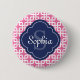 Pink Square Chain Pattern Blue Monogram 6 Cm Round Badge