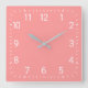 Pink Square Wall Clock. You can easily change the background colour. Perfect for decorating your home, kitchen or office. You can add text and images if you wish the numbers would stay.