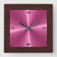 Pink Stainless Steel Modern Burlap Border Square Wall Clock