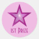 Pink Star '1st Prize' round sticker pale pink