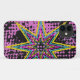 A dusty aqua and mottled black and pink background is the perfect backdrop for a fuchsia, aqua and yellow star.
