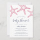 Our coastal chic baby shower invitations feature classic nautical styling with a clean, minimalist look and a lighthearted touch of marine life. Design features three vibrant fuchsia pink starfish illustrations at the top, with your baby shower details beneath in a chic combo of navy blue serif and sans serif lettering. Perfect for nautical, summer, or beach theme baby showers.