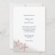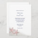 Beach theme wedding invitations with two pink starfish in the sand and blue text!
