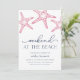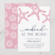 Modern coastal beach weekend invitation is perfect for bachelorette getaways, girls trips and more! Nautical design in vibrant pink and navy features three vintage style starfish illustrations at the top, framing your beach getaway details in a chic mix of classic serif and modern sans serif typography.