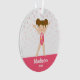 Cute gymnastics girl personalized Christmas ornament. Featuring a brunette haired gymnast illustration wearing a pink outfit. === BEFORE you place your order, contact the designer for FREE COLOR CHANGES (uniform color, hair color, skin color and background color). === GRAPHICS by JW Illustrations © JESSICAWEIBLE.COM