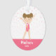 Pink Stars Brunette Girl Gymnastics Personalized Ornament