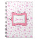 Dance with these stars, using this personalised notebook. Featuring a pretty pink and white star backdrop with a pink doodle frame, customise your name inside of the design. Place your order today!