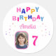 Pink Stars Happy Birthday Party Girl Photo Classic Round Sticker