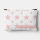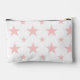 A pretty and elegant pink stars pouch. This modern, feminine cosmetic bag doubles as a pastel pencil case, perfect as a cute toiletry or back-to-school makeup bag for her, girls, or a constellation-themed gift.