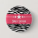 Trendy and modern Stars Zebra Print Sweet Sixteen Button featuring a chic black and white zebra print background and a bold magenta border adorned with a fun star motif. This girly button is a hip and stylish choice for a fun sweet 16 party favour. Easy to customise, simply add party details in the text fields provided. Click "Customise It" to find more personalisation options.