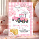 Pink Start Your Tractor Farm Theme Girl Birthday Invitation