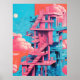 The stairs, a prominent element in the illustration, create a sense of movement and progression, symbolising the journey one might take within the space. Each step is thoughtfully rendered, encouraging the imagination to wander through the various levels of the building. The combination of colours enhances the overall aesthetic, making it an eye-catching piece that can inspire creativity and curiosity.