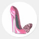 Pink Stiletto Shoe and Pink Butterfly Classic Round Sticker