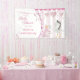 Welcome your guests with elegance and sweetness using this pink stork baby shower banner, beautifully designed with a soft watercolor aesthetic. Featuring a graceful stork carrying a precious baby bundle, surrounded by delicate pink hearts, stars, and gentle ribbon accents, this banner creates a warm and magical atmosphere for your celebration.