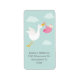 A stork delivers a pink baby girl bundle of joy on a background of blue sky and fluffy clouds on these return address labels matching our girl baby shower invitations. MATCHING items in our store.