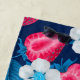 Pink strawberries on blue beach towel