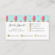 The design is repeated on the back of the card. The front features a customisable cursive script font for your name in black, and a place where you can add your job title. This card works well for professional bakers, confectioners, ice cream shops, candy shops, or gelato cafés - it would also be a fun concept for designers! The back features social media icons as well as contact icons in a gold foil texture, and they are all customisable and can be moved around.