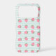 Fun design with pink strawberries and light blue stripes, perfect for the summer.