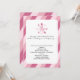 This precious baby shower invitation is a wonderful way to invite your guests to join you in celebrating your new arrival. This design has a pink diagonal striped background with a white inset. Centred at the top are diaper pins in shades of pink forming a circle, almost like a flower. Your party details are centred and are completely customisable. Just add your Shower details and you are ready to go!