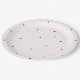 This little sweetheart birthday paper plates are perfect for your Valentine's Day birthday party food. The PRIYA Collection features a light pink and white striped background with a wavy pink frame and red hearts topped with a red coquette bow.