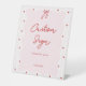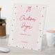 This editable little sweetheart first birthday sign are the perfect way to have custom party signage at your Valentine's Day birthday party. The PRIYA Collection features a light pink and white striped background with a wavy pink frame and red hearts topped with a red coquette bow. Script and serif fonts in red with editable text completes these girl little sweetheart birthday pedestal sign for a valentine birthday party.