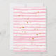 Trendy and modern Baby shower invitation featuring pink watercolor stripes, gold splatters and matching back page.