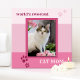 A super cute tile featuring a photo of your own favourite kitty framed by a pink striped design with cat paw prints and your own custom texts.