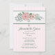 A beautiful pink and white striped invitation featuring a crescent of pink and grey, watercolored-flowers and foliage. Perfect for any religious sacrament. The featured cross can be removed making this a versatile invitation.
