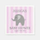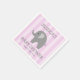Custom pastel pink and grey cute elephant baby shower napkins Personalised babyshower accessories with zoo animal theme. Girly design with name and date of birth. Adorable illustration for infant. Change colours for boys or girls. Create your own fun party supplies with customisable text. Add your own colour like; pastel light pink purple yellow blue grey etc. Cute idea for pregancy, new mum, mother to be. Also funny for kids 1st Birthday party celebration. Elegant typography template with trendy stripes pattern. Disposable throwaway paper napkins with bold stripe print. Customisable line size.