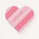 This is a pink and white striped modern heart shaped personalised note pad.