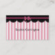 A pattern of pink and white vertical stripes with a black lace border with a pink ribbon and bow. Add your initial to personalise.