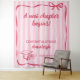 Girly graduation backdrop with monochrome pink stripes and a large wavy frame with a bow in raspberry pink. A new chapter begins for your daughter! Congratulate her by personalizing with her name, her school, and the year she's graduating.