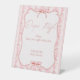 Pink stripes retro bow border elegant baby shower diaper raffle table sign, pastel pink baby girl baby shower personalised tale sign, retro stripes baby shower table sign, baby girl baby shower personalised table signs