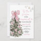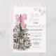 Pink Stripes Bow Christmas Tree Couple Wedding Invitation