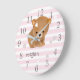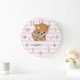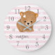 Pink Stripes Brown Bear Nursery Decor Wall Clock