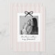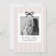 Looking for a sweet and meaningful way to ask a loved one to be your baby's Godmother? This card design is the perfect way to pop the question! Whether you're asking a family member or close friends, this template helps you create a heartfelt moment that they'll treasure forever. This design features a pale pink stripy background and a black bow, along with space for a photo of your choice. You can edit the colour of the stripes, bow and all of the text in this design.