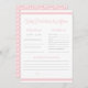 Cute and feminine baby shower prediction and advice flat card featuring pink and white stripes and pink bows pattern. This baby shower game is perfect for "It's a Girl" baby showers.