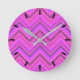 Pink stripes zigzag pattern round clock