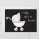 Pink and black baby girl shower invitation featuring a pink and white lace trim baby stroller.
