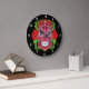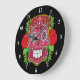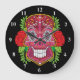 Pink Sugar Skull With Red Roses Green Leaves Large Clock