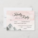 This Pink Sunrise Mountain wedding response card with meal choice brings a classy and unique, yet simple and casual touch to your wedding. The sunrise and sunset shades of pink, mauve, peach, blush, coral and dusty rose, kissed with starry gold glitter around the styled calligraphy text brings a peaceful, minimal nature to the watercolor painted grey mountains for a mountain themed marriage celebration.