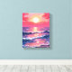Pink Sunset Purple Ocean Waves Watercolor Canvas Print